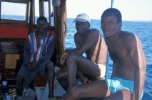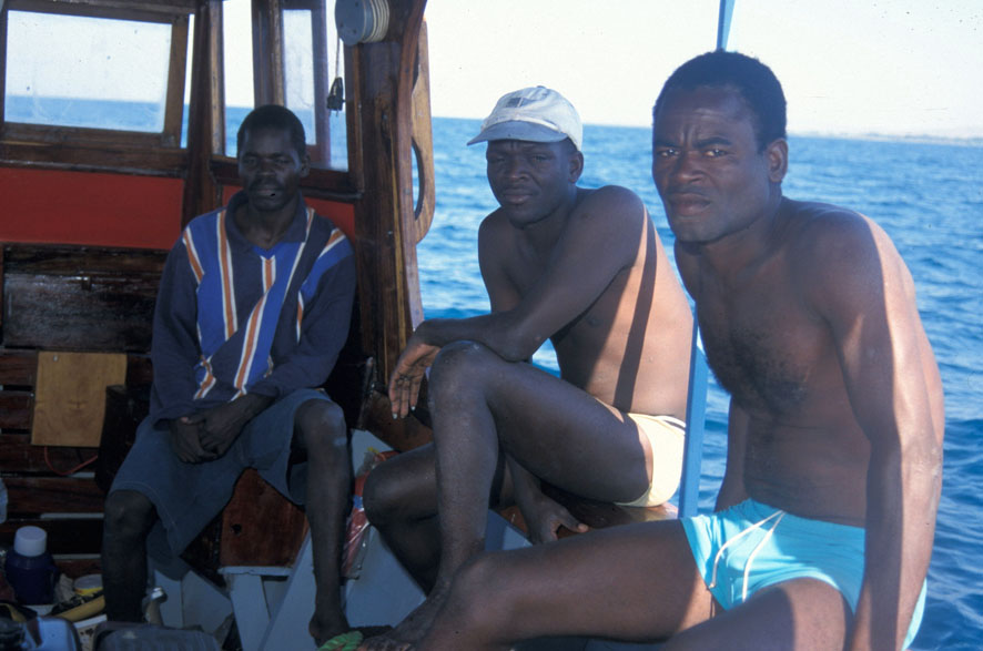 droite à gauche Eric, Martial, Saulos Mwale (chef plongeur à