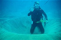 de Dimidiochromis kiwinge, voir la taille par raport au plongeur